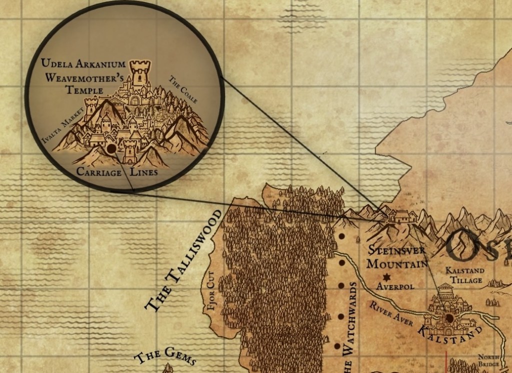 The first book, ‘A Constellation of Shadows‘, takes place in Eredhest. It’s located to the far north east of Emasia, and is surrounded on each side by the Lusenora Sea. To the north, beyond the Oselka Mountains, lies the frost-riddled country of Skevela.